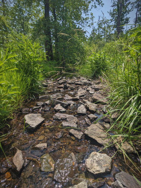 This trail can be picked up from Buck Trail, Chrome Trail and Feldspar Trail. Half of this trail runs along the Serpentine Barrens, which means that you will be exposed to the sun. The other half is through a young forest next to Black Run. Along the way, you will pass the WWII monument at Victory Run and Black Run.