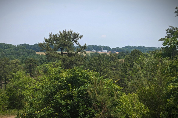 This trail begins at Pavilion #7 and can be difficult to locate. It begins at a gate that leads to a cornfield. It runs parallel with the fawn trail for a while then turns left so you are between the cornfield and the meadow. It then turns once you hit the pond. It's here that I first saw the red trail marker. This trail has a lot of connecting trails, so you need to pay attention, that you don't get off course. If you see a green sign with a number on it that means that you are going down a firebreak trail. There is not a lot of shade on this trial, so make sure you are prepared in the summer months.